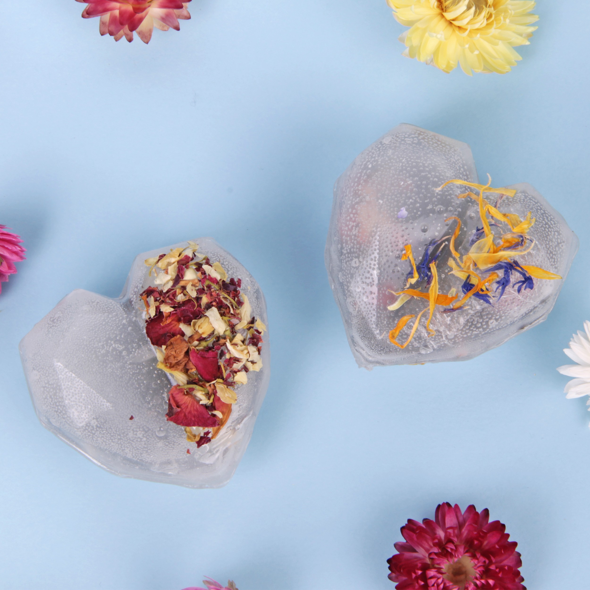 Každé srdce z izomaltu ukrývá jedinečnou čajovou směs. První srdce obsahuje zelený čaj s lyofilizovanými jahodami a příchutí šampaňského, zatímco druhé srdce obsahuje tropickou směs černého čaje s mangem a kokosem.